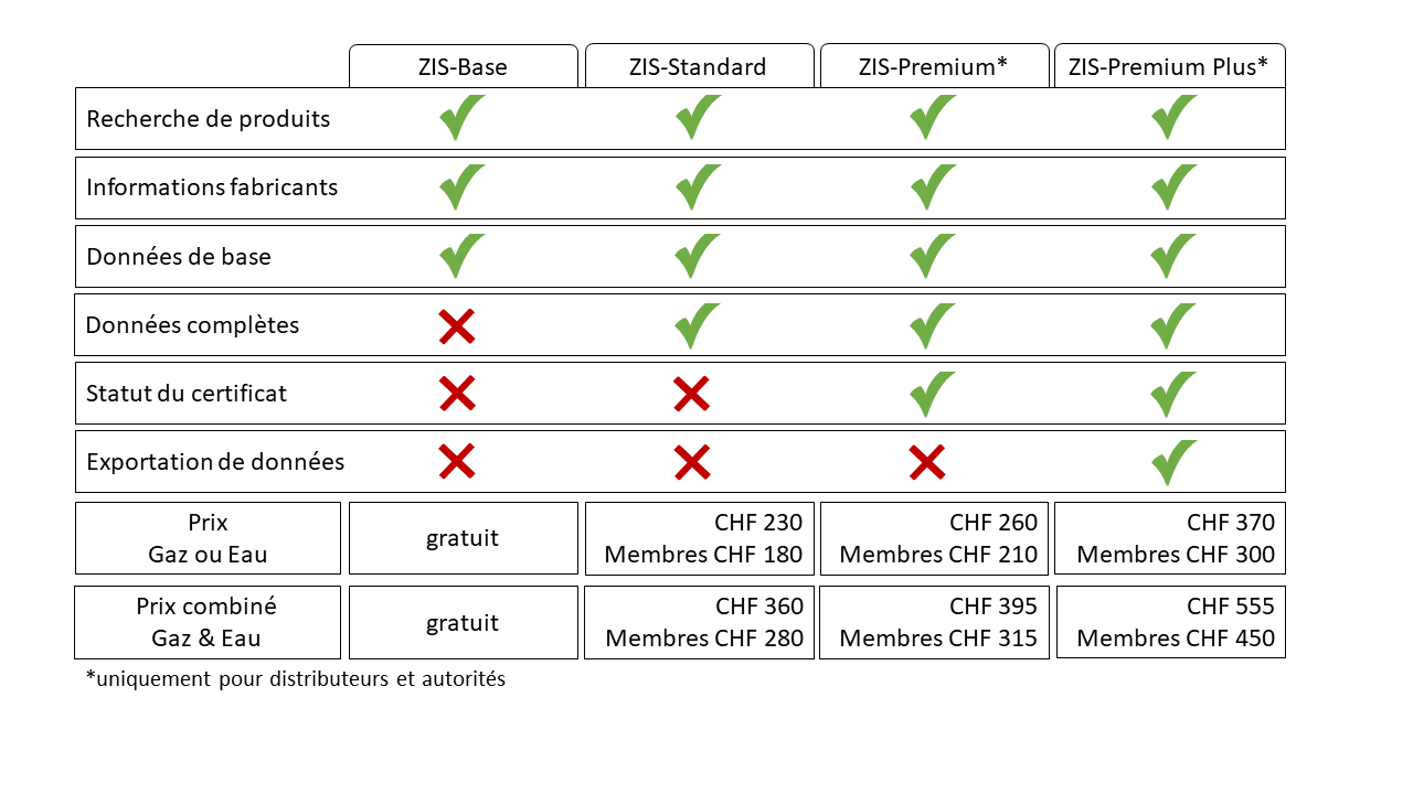 REGISTRIERENUnternehmen, die ihre Produkte beim SVGW zertifizieren lassen, haben die Möglichkeit den Status ihrer Produkte (Zertifiziert, Abgelaufen, In-Bearbeitung) für 60 CHR pro Jahr (Gas oder Wasser) respektive 90 CHF pro Jahr (Kombi-Angebot Gas und Wasser) jederzeit online abzufragen.